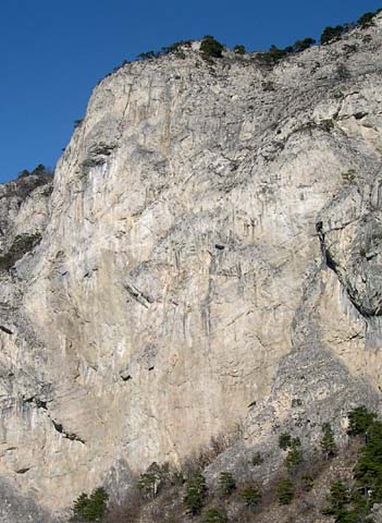 cui la parete è ben visibile, risalire per il crinale e giunti in prossimità