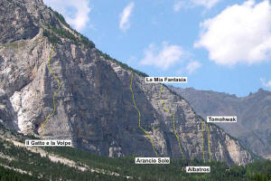 mano ) aprono, facendo uso sistematico degli spit, la prima via moderna, “La Albatros ”, 200 metri di arrampicata libera al limite delle difficoltà