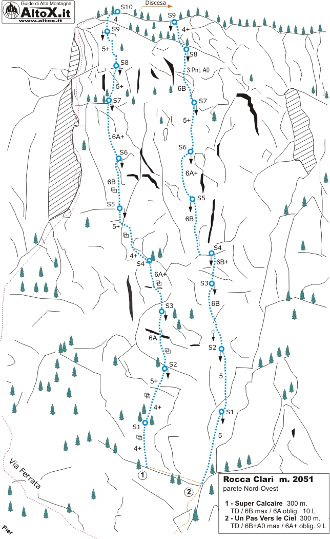 300 metri 10 lunghezze TD 6B max / 6A oblig.