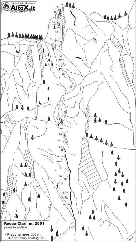300 metri 9 lunghezze TD 6B max / 6A oblig.