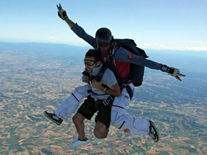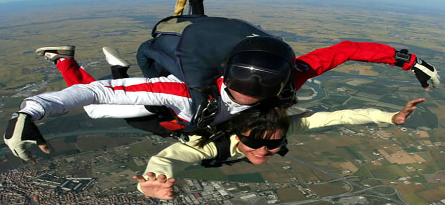 Proverete l'emozione di saltare da un aereo a 4 chilometri dal suolo, precipitare per un minuto a 200 Km orari immersi nel blu. Capirete che "volare" non è cadere, ma muoversi nell'aria, salire, scendere, ruotare come se foste in acqua. Alla quota prefissata l'istruttore aprirà il paracadute e vi troverete appesi alla vela in una pace e un silenzio quasi irreali. Da 1500 metri a terra potrete pilotare il paracadute assistiti dall'istruttore tramite i doppi comandi, vi godrete lo spettacolo della città vista dall'alto PASSEGGIANDO nel vuoto. |